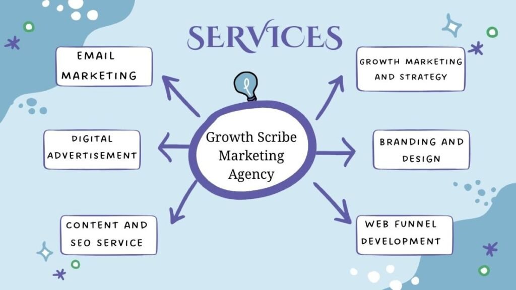 Growthscribe marketing agency service offers comprehensive digital services to various types of businesses, focusing on their growth by strategy and elevating their revenue. Below, we have discussed the type of service that they are offering. Key Service Areas: